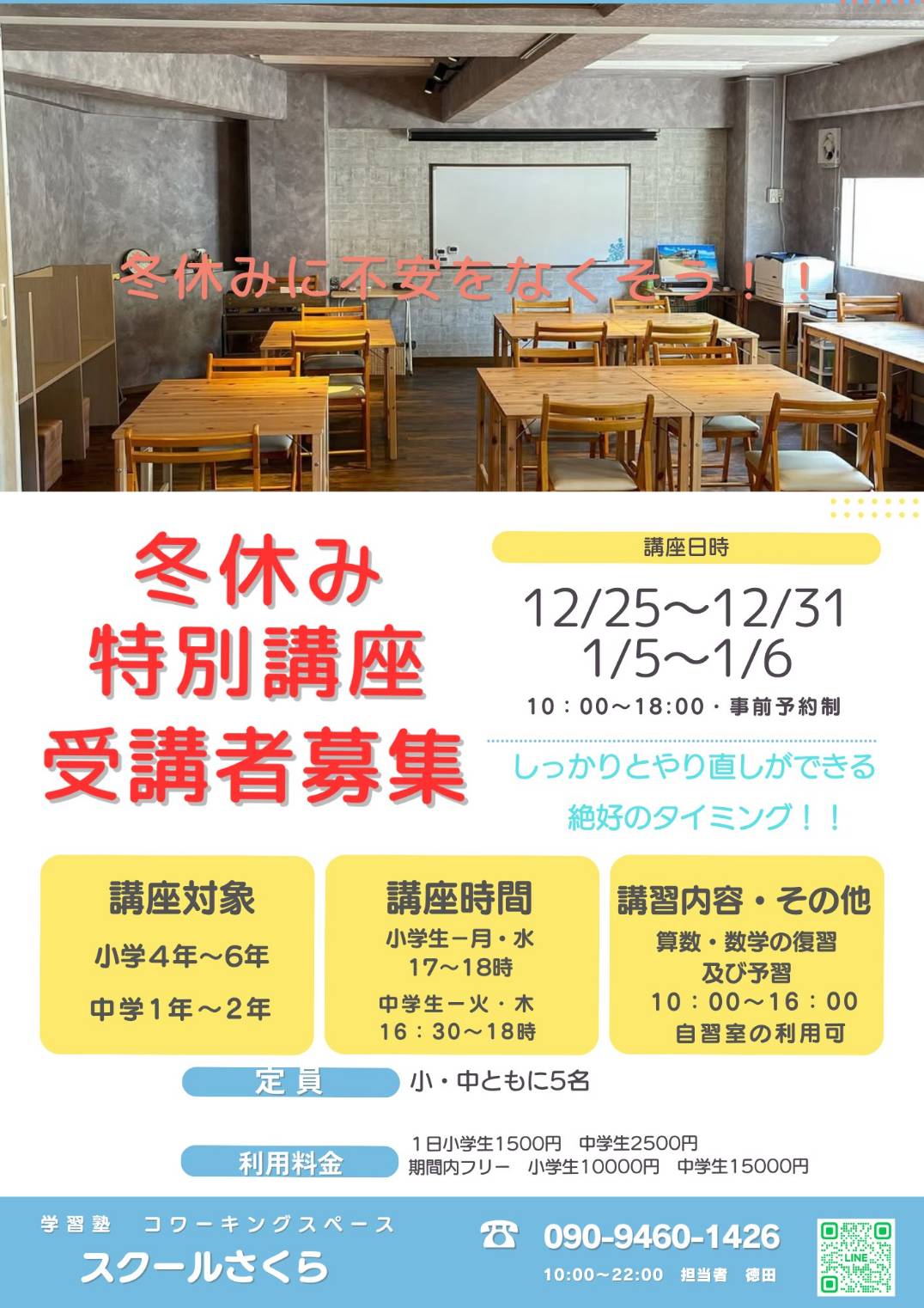夕方以降の時間帯は学習塾スクールさくらで生徒たちの学習を全力サポート!!